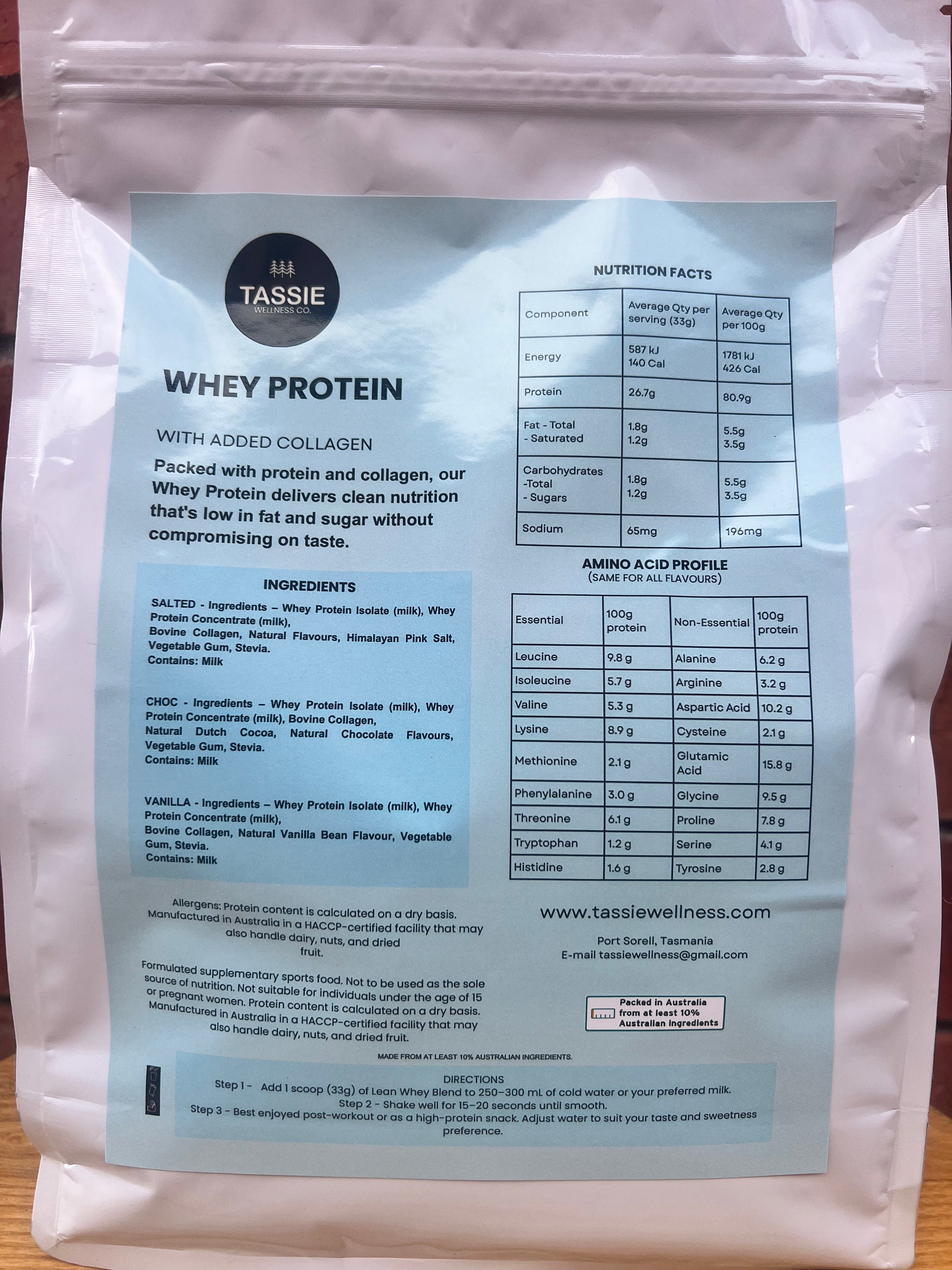 SALTED - Ingredients – Whey Protein Isolate (milk), Whey Protein Concentrate (milk), Bovine Collagen, Natural Flavours, Himalayan Pink Salt, Vegetable Gum, Stevia. Contains: Milk